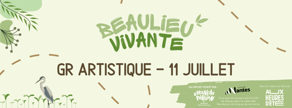 De février à juin 2025 des artistes en résidence travailleront sur la question des liens entre humains et non-humains. Par la mise en place d’impromptus musicaux auprès de structures locales et dans l’espace public, l’immersion en résidence dans le Parc Naturel de Beaulieu, l’implication d’habitant·e·s dans une performance chorégraphique et la diffusion de formes artistiques légères sur le territoire, les artistes croiseront les approches pour révéler les empreintes artistiques et sauvages du quartier Beaulieu.