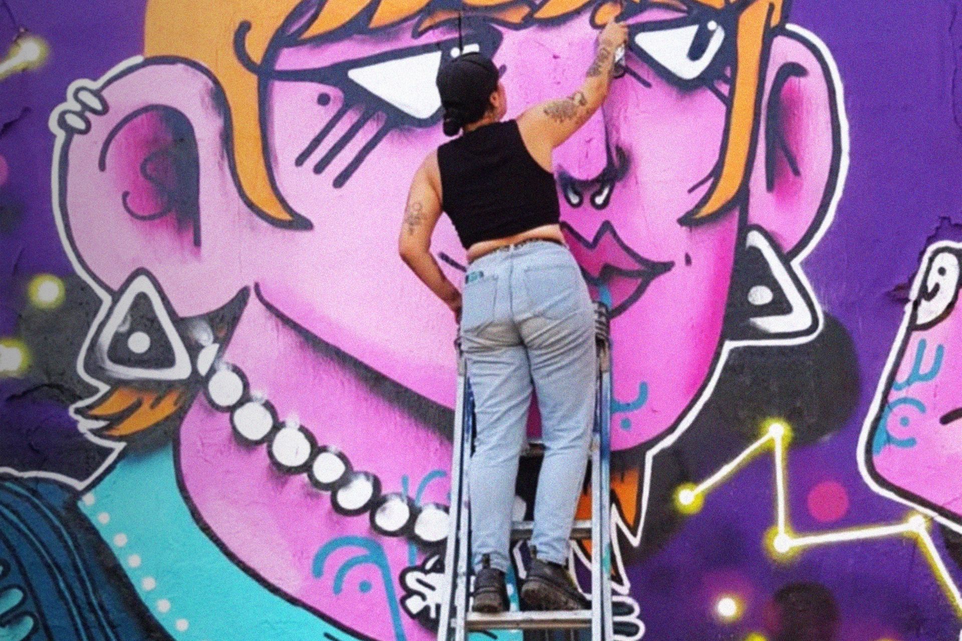Assistez à la réalisation en live d’une fresque murale de Matilda aka GAMÄ, illustratrice nantaise. Personnages turbo colorés avec un style graphique bien à elle, ses peintures cherchent à apporter de la lumière dans ce monde terne. La tête à fond dans les étoiles, vibes d’Amour et d’Espoir.