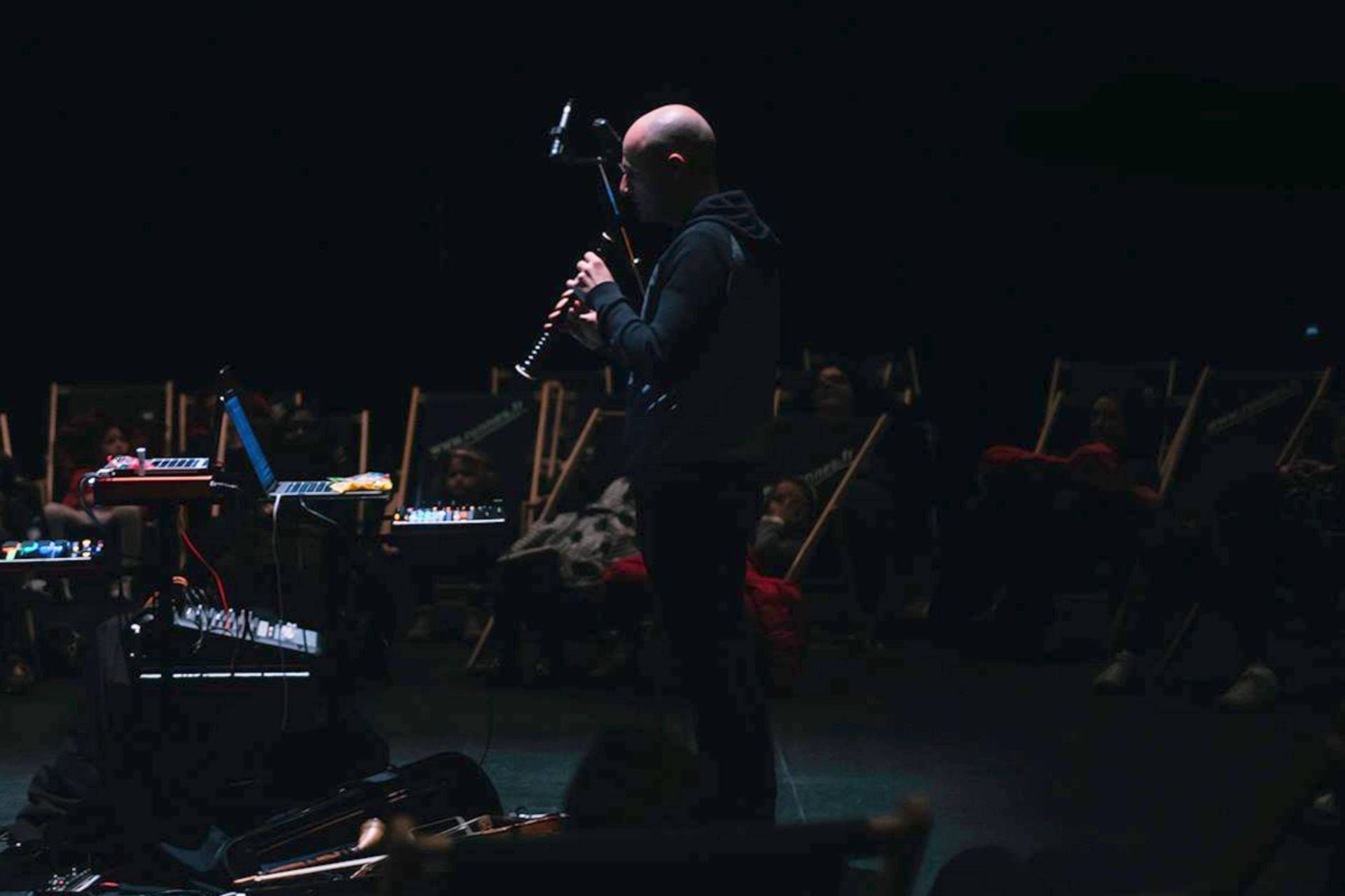 Imaginez un lieu plongé dans la pénombre, quelques éléments pour s’assoir, pour se poser. Et tout autour une couverture de notes, un tapis de sons.