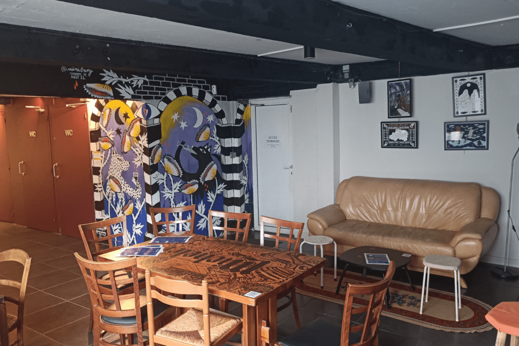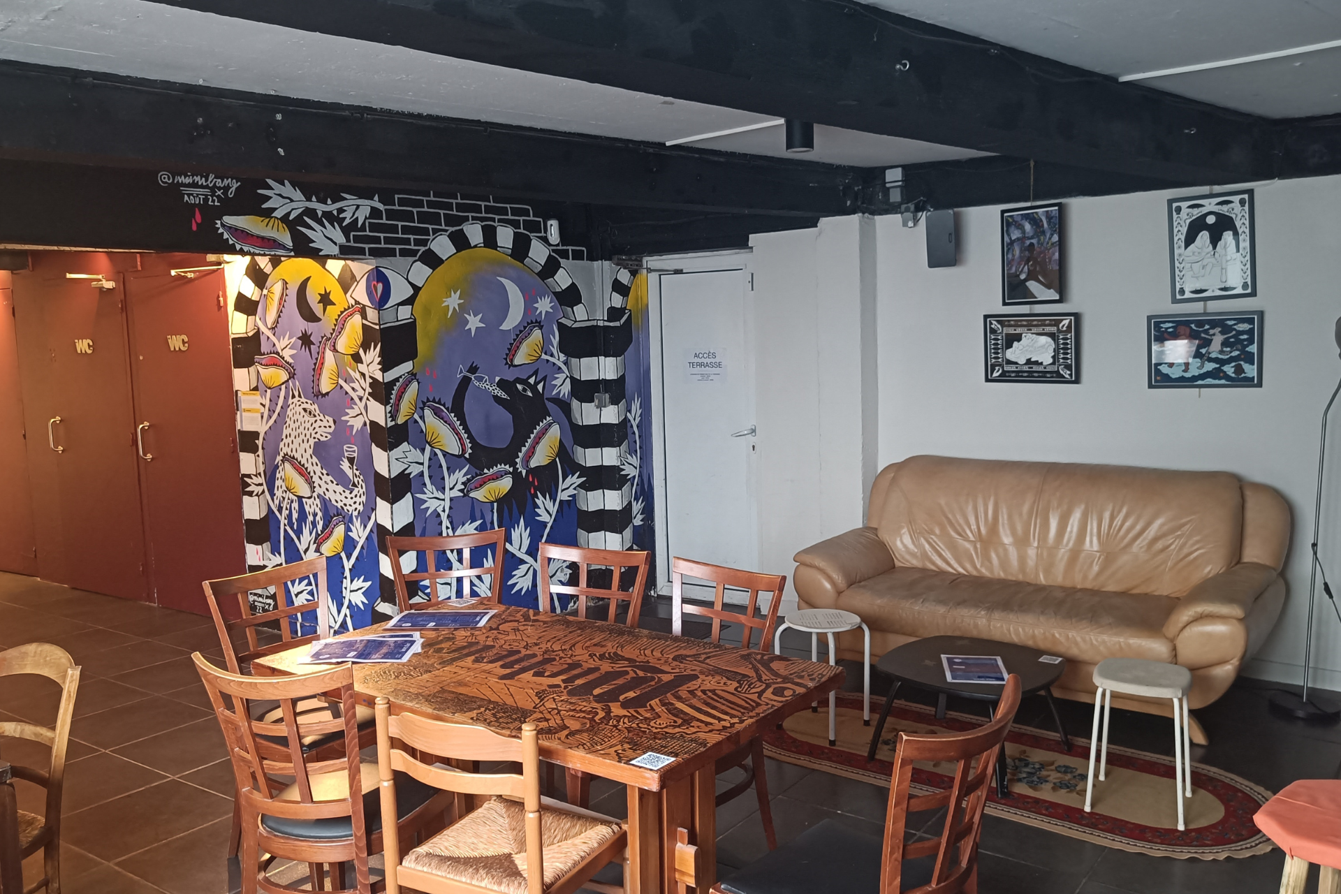 Cette salle attenante au bar, d’une grande superficie, est totalement modulable et permet d’y proposer des événements variés : ateliers, activités culturelles, spectacles jeune public, formations, espace de travail collectif, etc.